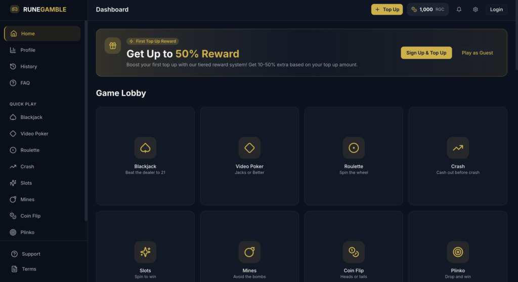 www.runegamble.com stands out for its diverse selection of games, catering to a wide range of player preferences. The platform offers an extensive variety of types of games, ensuring that all players find something that resonates with their interests and skill levels. From captivating slot games to classic table games and interactive live dealer casino options, the gaming experience is designed to keep players engaged and entertained.